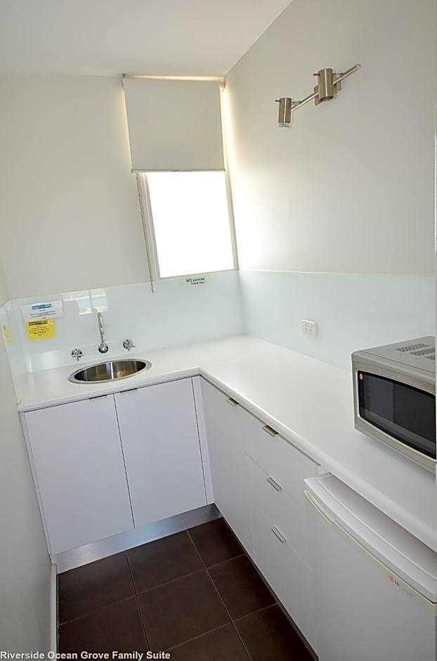 The spacious 2-bedroom Family Room consists of of 2 generously sized bedrooms with a queen and single bed, the main bedroom with queen bed. A comfortable lounge and table & chairs for entertaining. It has a kitchenette with microwave, kettle, toaster and ample cutlery and crockery. It offers private access to the garden and pool through your furnished outdoor deck.